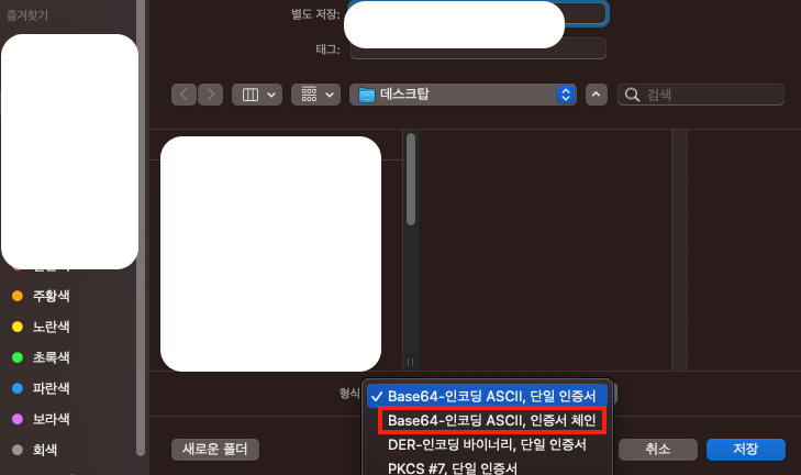 Base64-인코딩 ASCII, 인증서 체인을 누르고 저장합니다. 그리고 다음 저장된 파일을 열어서 안에 있는 파일을 복사해서