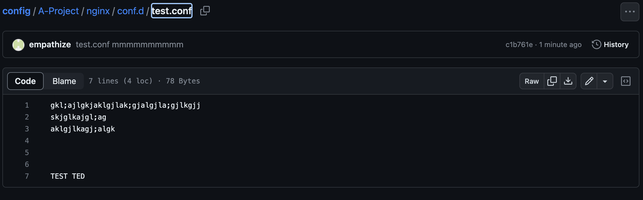 테스트로 A-Project/nginx/conf.d/test.conf 를 만들었습니다.