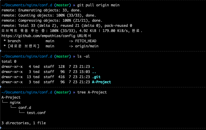 다음과 같은 피알이 있고 우리는 conf.d 안에 있는 파일 을 git으로 내려 받을 겁니다.