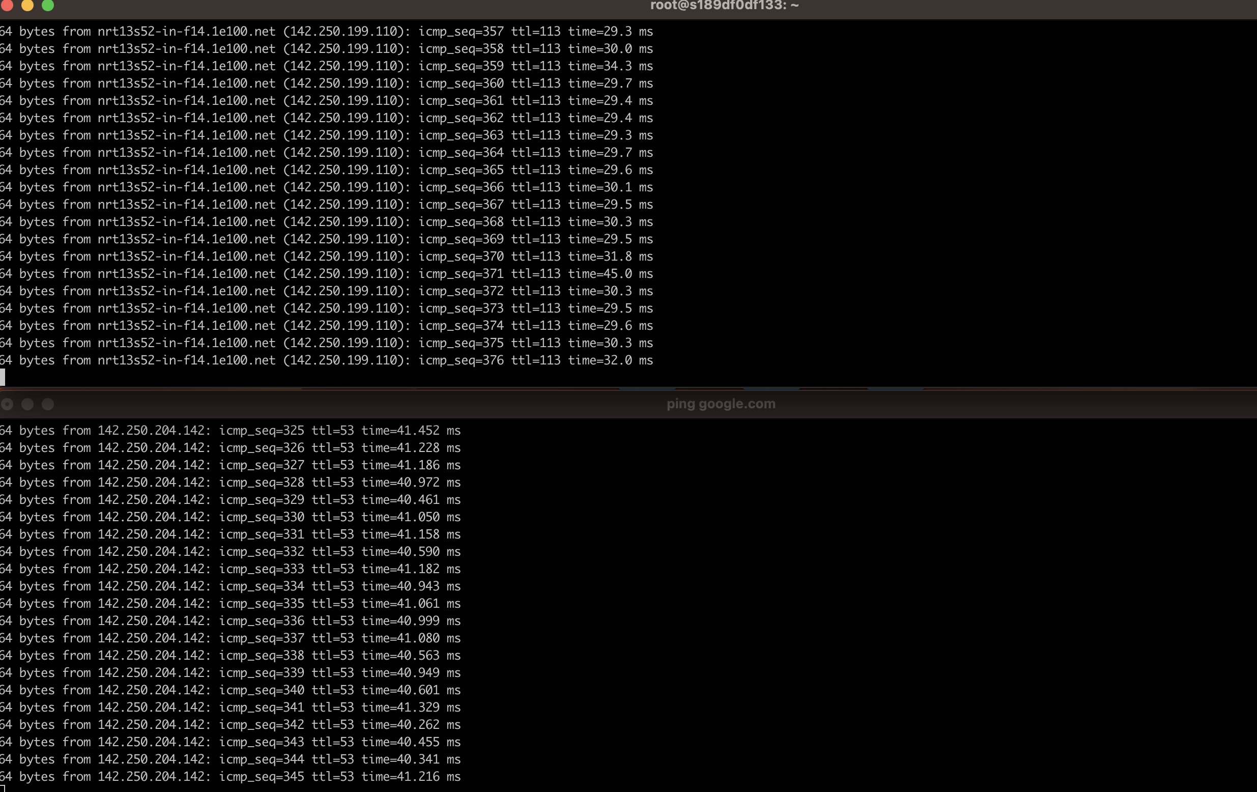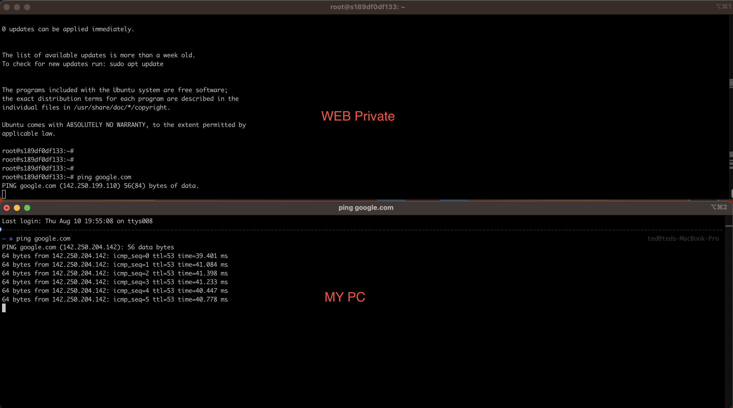 위 이미지에 ping이 퇴는 모습을 볼수 있습니다.