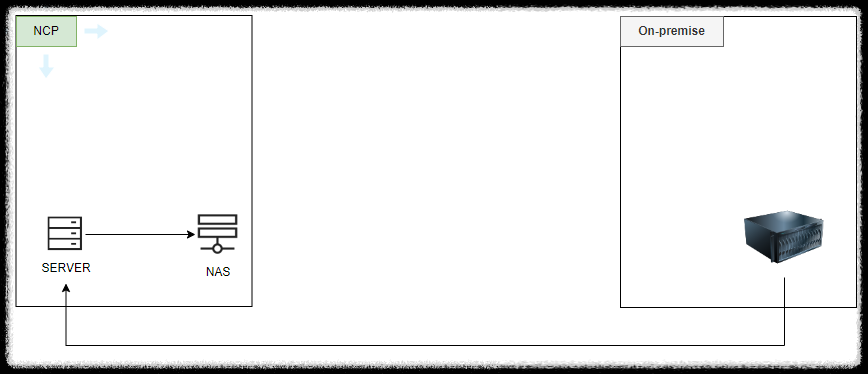 아래와 같이 NCP내부에 있는 서버에 NAS를 연결한 서버에다 연결하는 것이다.
