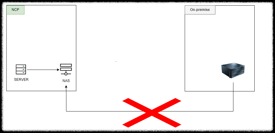 Ncloud 서비스에서 NAS서비스를 사용함에 있어 온프레미스 서버와의 연동이 안된다.