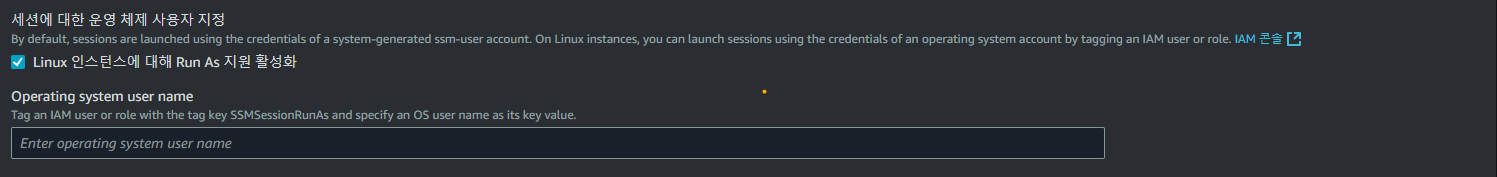 위와같이 적용하면 이제 SSM을 통해 서버에 접속합니다. 시작 ID가 사용자 계정과 같아진 것을 확인 하 실 수 있습니다.