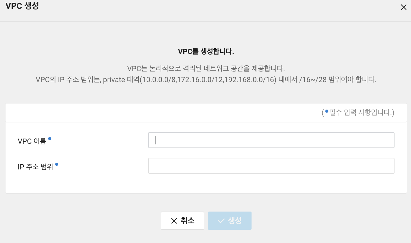 ncloud 경우 aws 와 다르게 처음부터 vpc를 생성해 줘야 합니다.