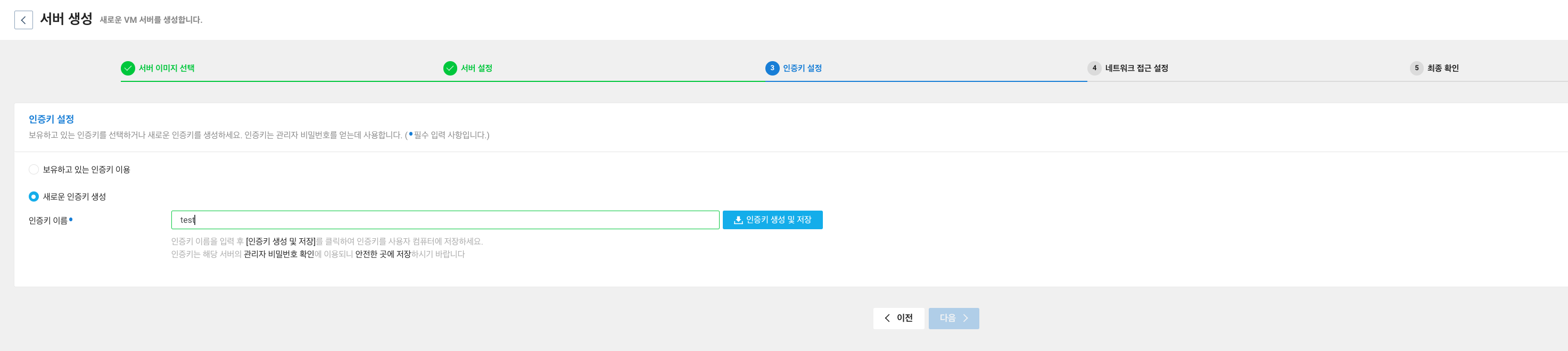 Ncloud 에서 인증키는 Server 콘솔에서 초기 패스워드를 확인하는 용도로 사용 하게 됩니다.