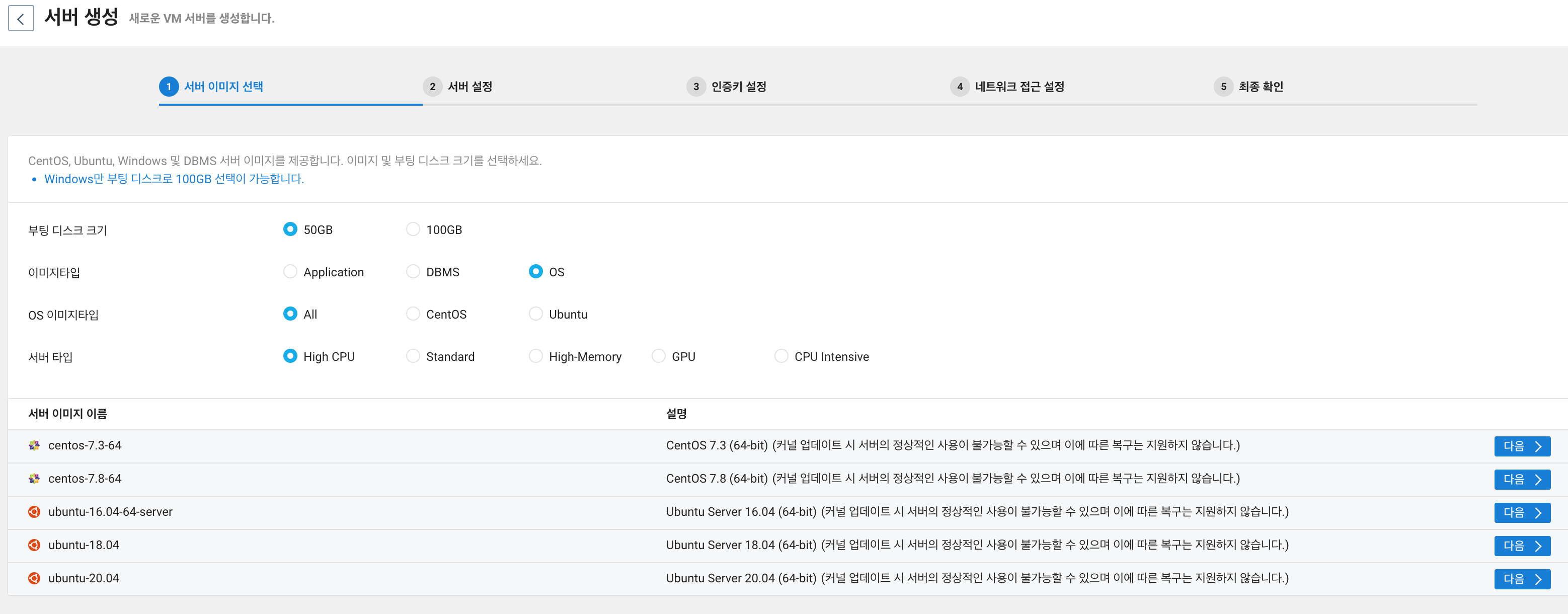 그리고 OS는 Centos7과 Ubuntu 16, 18, 20 버전을 제공 합니다.