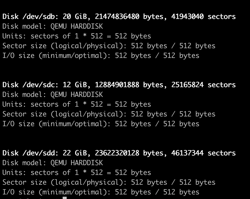 아래와 같이 3개 모두 진행해 줍니다. /dev/sdb, /dev/sdc/, /dev/sdd
