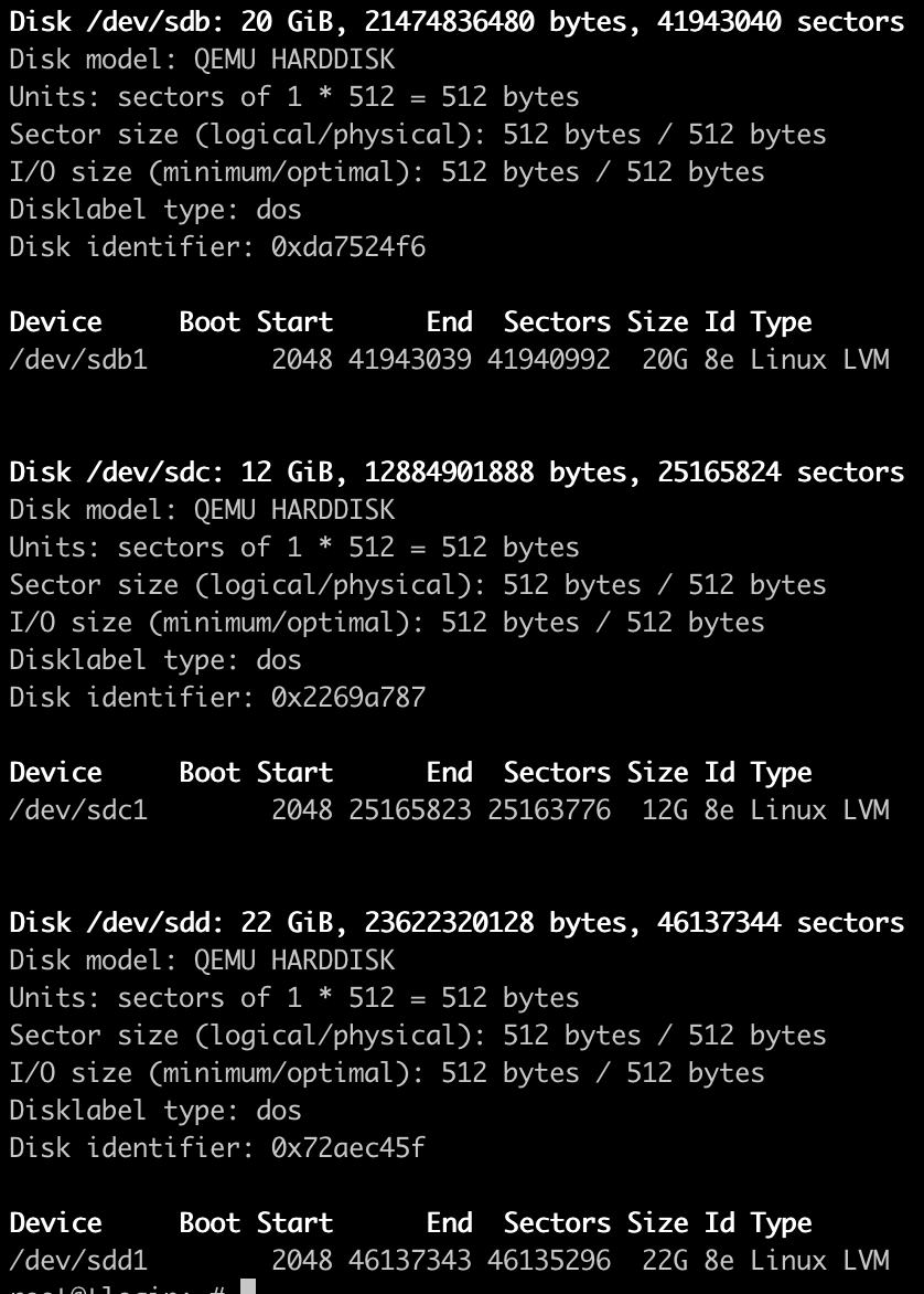 요렇게 20G disk 한개와 12G disk 한개 22G disk 한개를 마들었습니다.