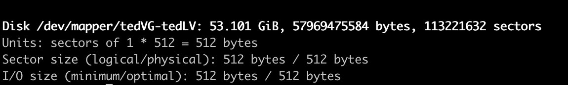 /dev/mapper/tedVG-tedLV 53G 24K 51G 1% /backup